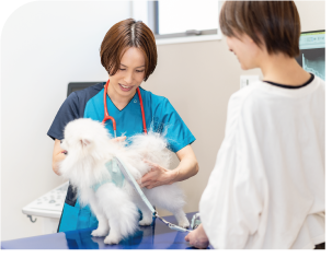 ホームドクターの役割として、ペットとご家族がより良い関係を築けるように、しつけやペットとの接し方についてもしっかりとご相談にのることを大切にしています。子犬、子猫の時期は将来的な問題行動を予防する大切な時期です。シニア期は行動の変化も多く、ご家族にとって心配なことが増えてくることと思います。特にその時期は積極的にケアしていきたいと考えています。